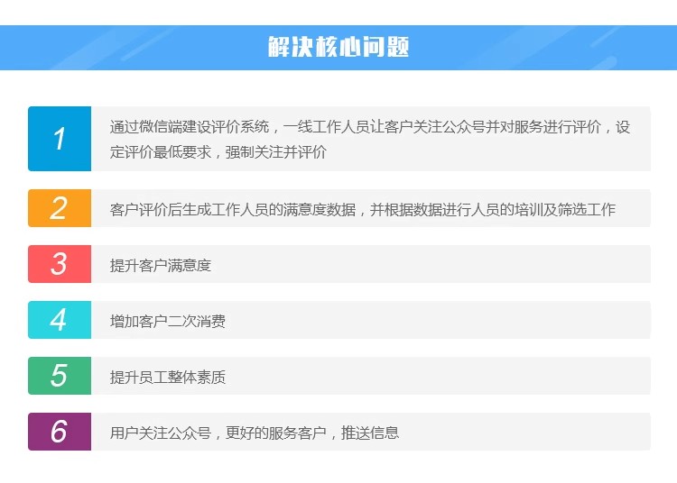 通過微信端建設評價系統,一線工作人員讓客戶關注公眾號并對服務進行評價,設定評價較低要求,強制關注并評價。