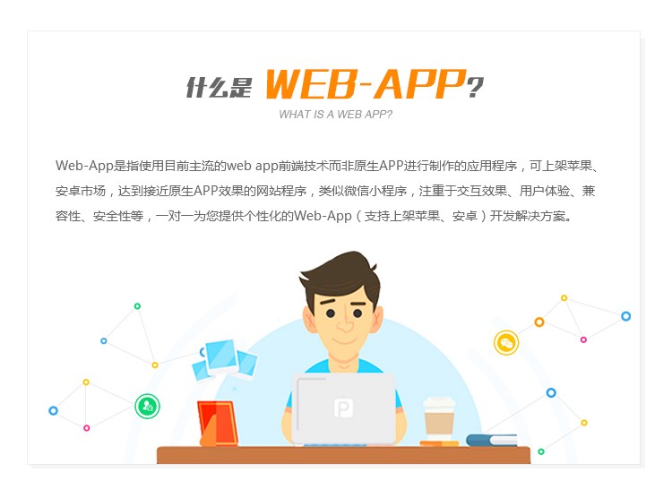 Web-App是指使用目前主流的web app前端技術而非原生APP進行制作的應用程序,可上架蘋果、